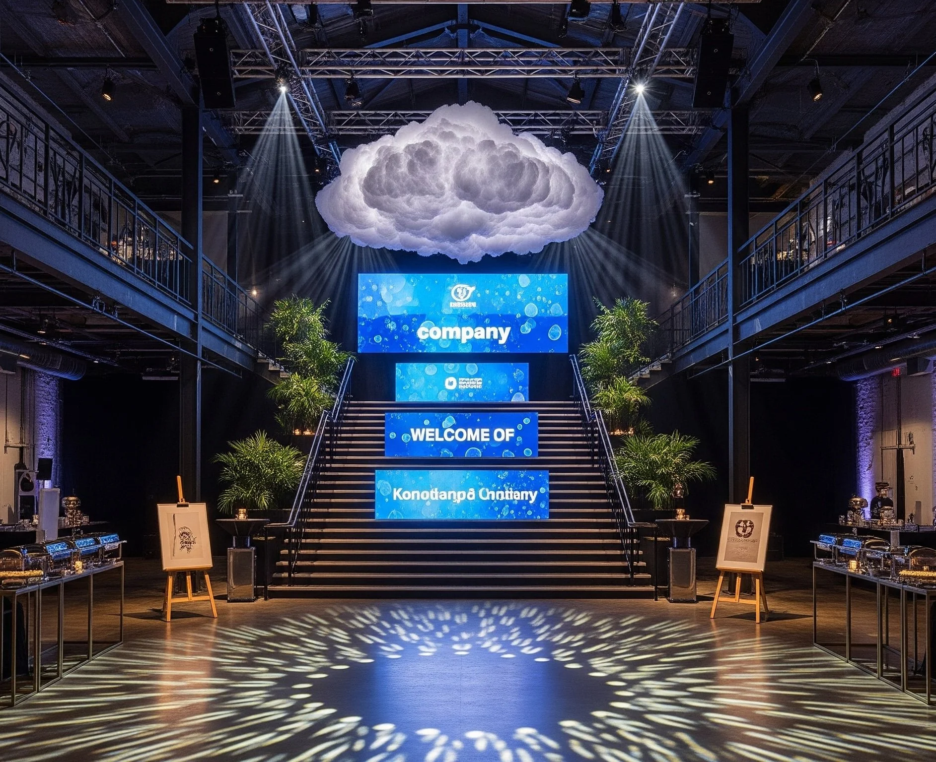 This versatile space, with its stylish industrial-modern look and unique tiered seating, is perfect for many kinds of events. Think impactful conferences, exciting product launches, elegant corporate galas, or large, lively social gatherings. Its open layout and different levels offer a flexible setting, making it easy to host anything from engaging presentations to vibrant celebrations.